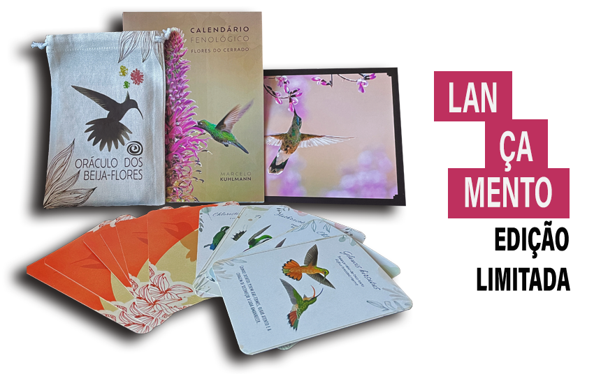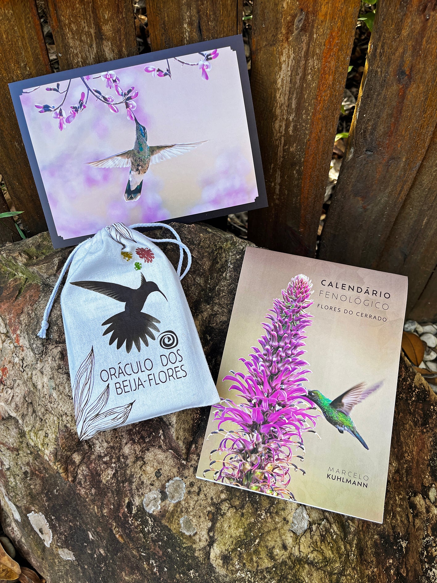 Descubra o Cerrado em sua essência com esse kit exclusivo: calendário de floração, coleção de fotografias e oráculo dos beija-flores. Por Marcelo Kuhlmann